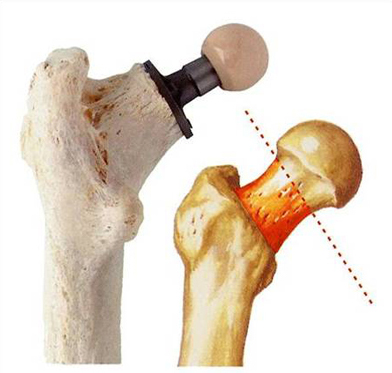 Schenkelhalses zu erhalten, zusätzlch ist die Prothese kürzer,